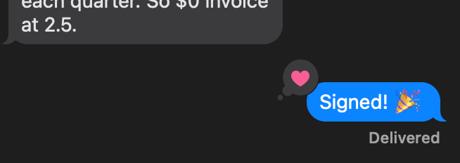 Today I signed an agreement and sent the founder a text: “Signed! 🎉”. I was excited to sign up and pay him. I even felt a little lucky to have found the software we’re signing up for. I might’ve been more excited than the founder I sent it to honestly and this isn’t cheap software at $2,500/month.